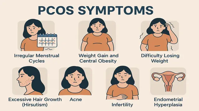 It is a hormonal disorder that affects 8-13% of women of reproductive age. It causes irregular menstrual cycles (chronic anovulation), excessive hair growth (hirsutism), hyperandrogenism, central adiposity, acne, infertility, and of course the development of polycystic ovaries.